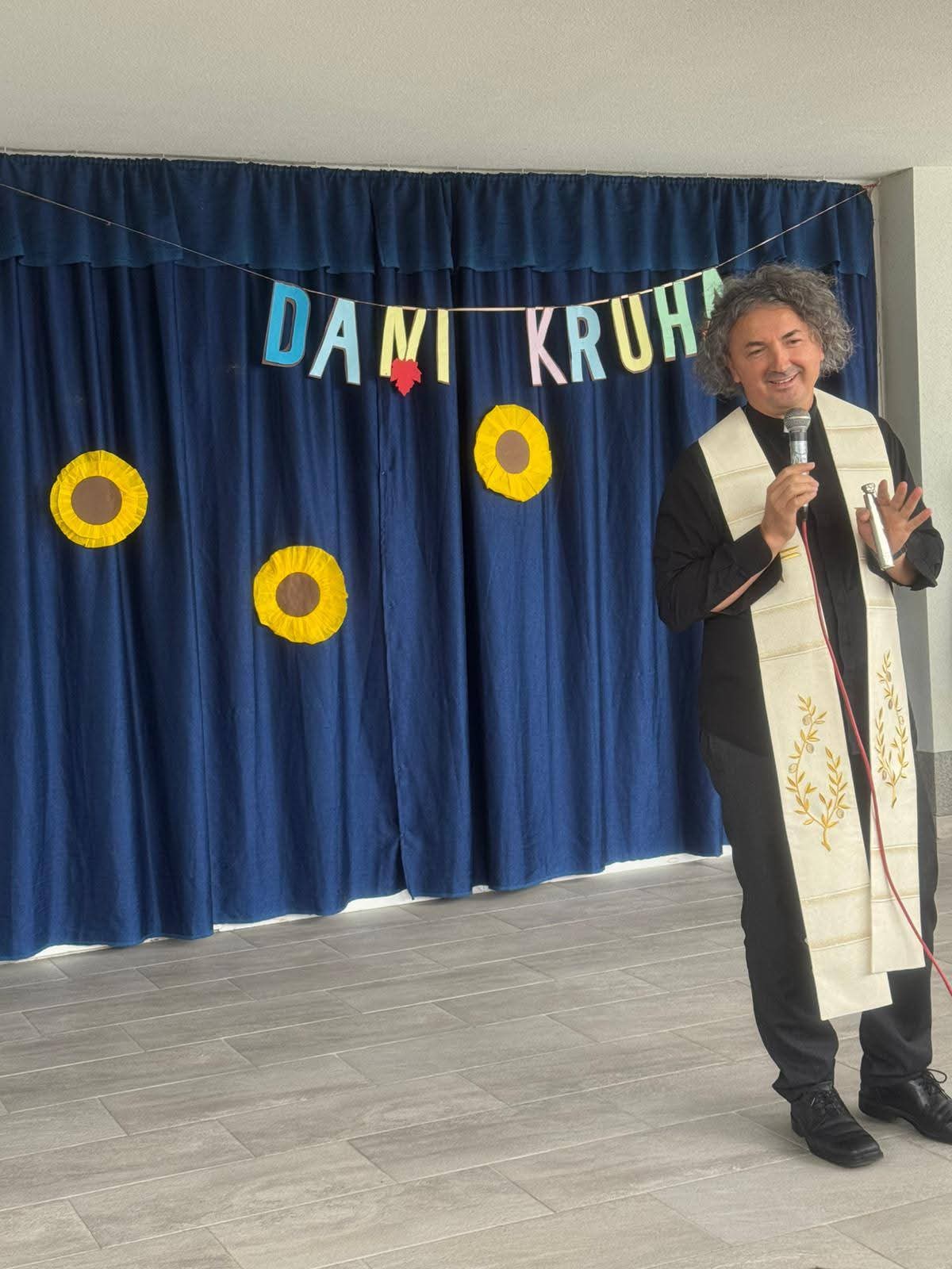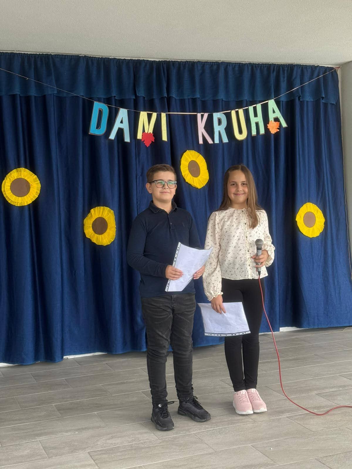 Svečanostima Dana kruha, uz molitvu, blagoslov i simbolično blagovanje kruha zahvaljujemo Bogu na svim plodovima, radostima, uspjesima i darovima kojima smo tijekom godine kao narod i kao pojedinci bili podareni. Božji blagoslov i zahvalu Bogu na svim plodovima zemlje danas je ispred škole izrekao don Mladen Šutalo.