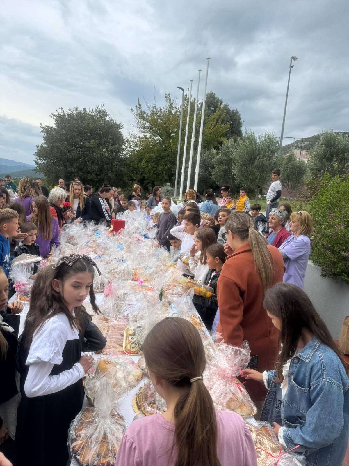 Kruh i druge maštovite delicije pripremila su djeca sa svojim roditeljima, a sve je bilo izloženo na zajedničkom stolu ispred škole gdje se nakon blagoslova moglo ostaviti dobrovoljni prilog i kući ponijeti neku od slasnih delicija.