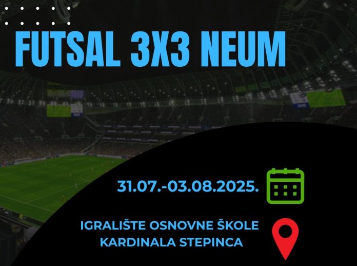 Nakon Turnira mjesnih zajednica općine Neum, za ljubitelje nogometa stiže još jedna dobra vijest, a to je turnir Futsal 3×3 Neum.
