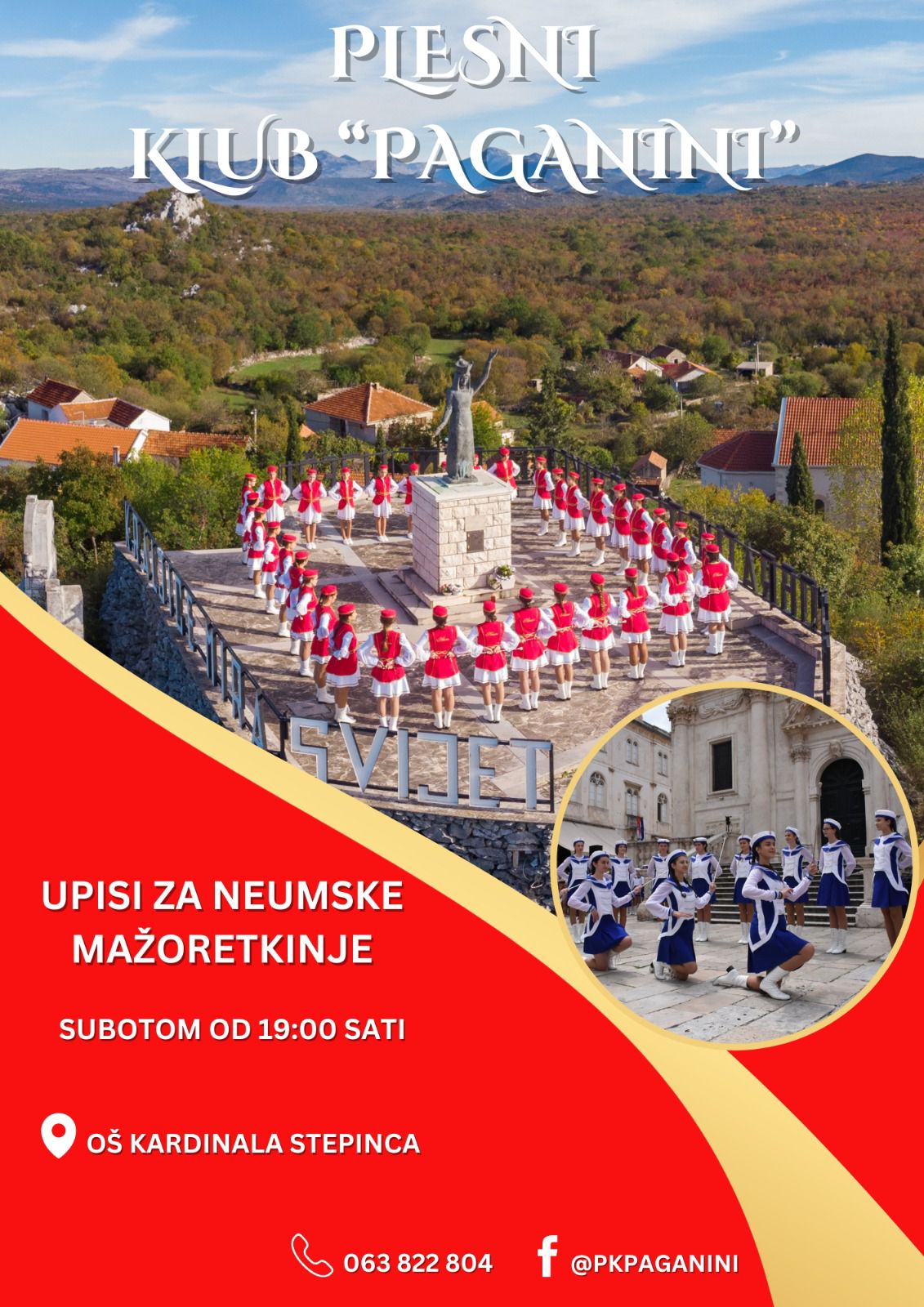 Kao i svake godine, na početku nove školske godine, mažoretkinje primaju nove članove, te stoga pozivaju sve od 4 do 14 godina, da im se pridruže i postanu dio njihovog tima. Ako želite uživati u ritmu, razvijati koordinaciju, steći samopouzdanje, družiti se i putovati, požurite se i pridružite se plesnom klubu “Paganini” i “Neumskim mažoretkinjama”. Neka oni budu vaš savršen plesni odabir!